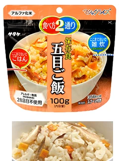 急速乾燥(水分率10%以下に)することで、「アルファ化(=糊化)」の状態を保てるようにしたお米のことで、長期保存が可能です。