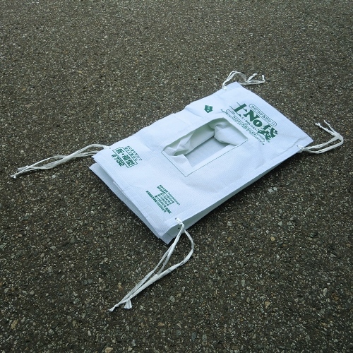 土のいらない、水だけで膨らむ緊急用土のう袋。