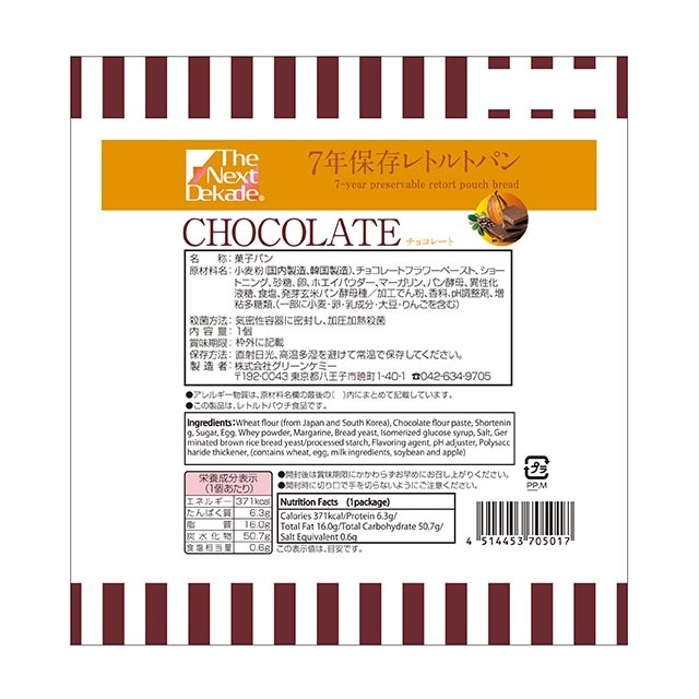 | 製品名: | The Next Dekade 7年保存レトルトパン チョコレート |